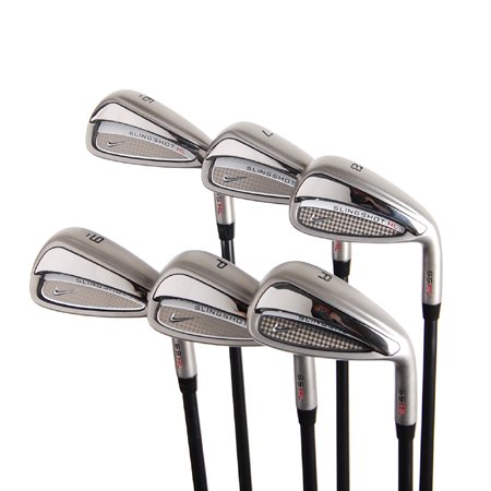 This is a 6 club set of authentic Nike Slingshot HL irons. These clubs are right handed and made with senior flex graphite shafts. Standard length.