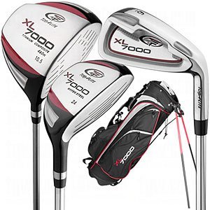 A fully loaded 18-piece set that’s the total package in one box. The Top-Flite XL 7000 Set is comprised of a 460cc titanium composite driver with a graphite shaft, two stainless steel fairway woods with steel shafts, two easy-to-hit stainless steel hybrids, six perimeter-weighted stainless steel irons and a putter. Also included are a lightweight stand bag and five head covers and a rain hood. Available in right-handed and left-handed sets.This fully loaded, 18-piece set of golf clubs from Top-Flite features a 460cc titanium composite driver with a graphite shaft; two stainless steel fairway woods with steel shafts; two easy-to-hit stainless steel hybrids; six perimeter-weighted stainless steel irons; and a putter.