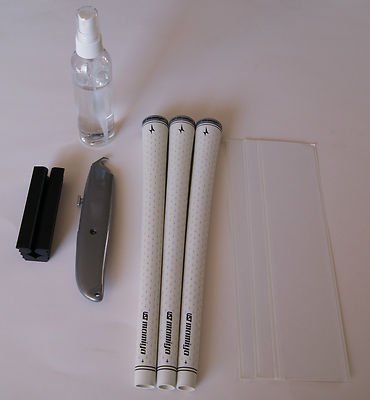 Title: 3 New Mens UST Mamiya Tour PC Multi Compound Golf Grips White Wrap with Grip KitModel: UST Mamiya Tour PC Quantity Of Grips: 3 Grip Size: Standard Double-sided grip tape (one per grip) Bottle of grip solvent Shaft clamp (to hold the shaft firmly in a vice) Utility knife with hook blade Core Size: .600" (will fit any shaft) Description: A set of 3 grips is good for re-gripping a driver/fairway woods or a set of wedges. This Soft Touch grip has an enhanced design to distribute a relaxed feel while limiting vibration through the use of advanced technology polyurethane materials. Wet or dry, this grip performs like a champion. These grips provide both a high traction grip as well as a soft and sticky feel. Product Details: golfgrips sizestd softgrip quantity3 gripkityes SKU: 1067