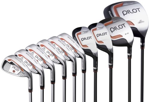 Square Two Men's Pilot Complete Set comes in a 10 degree titanium driver with square shape, stainless steel 3 wood graphite shaft, 3 and 4 wood like hybrids graphite shaft, 5-pw stainless steel irons steel shaft.