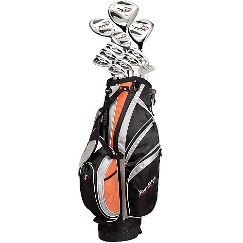 Get a leg up on the competition with the Tour Edge HP7 men's package set, headlined by a high-MOI titanium matrix driver that delivers longer, straighter drives. The low-profile fairway woods feature a low CG that gets the ball aloft quickly, while the hybrid offers a deep CG for maximum carry and a soft landing. Oversized 5-SW irons, a mallet putter, 4 headcovers, and a deluxe dual-strap stand bag complete the 17-piece set.